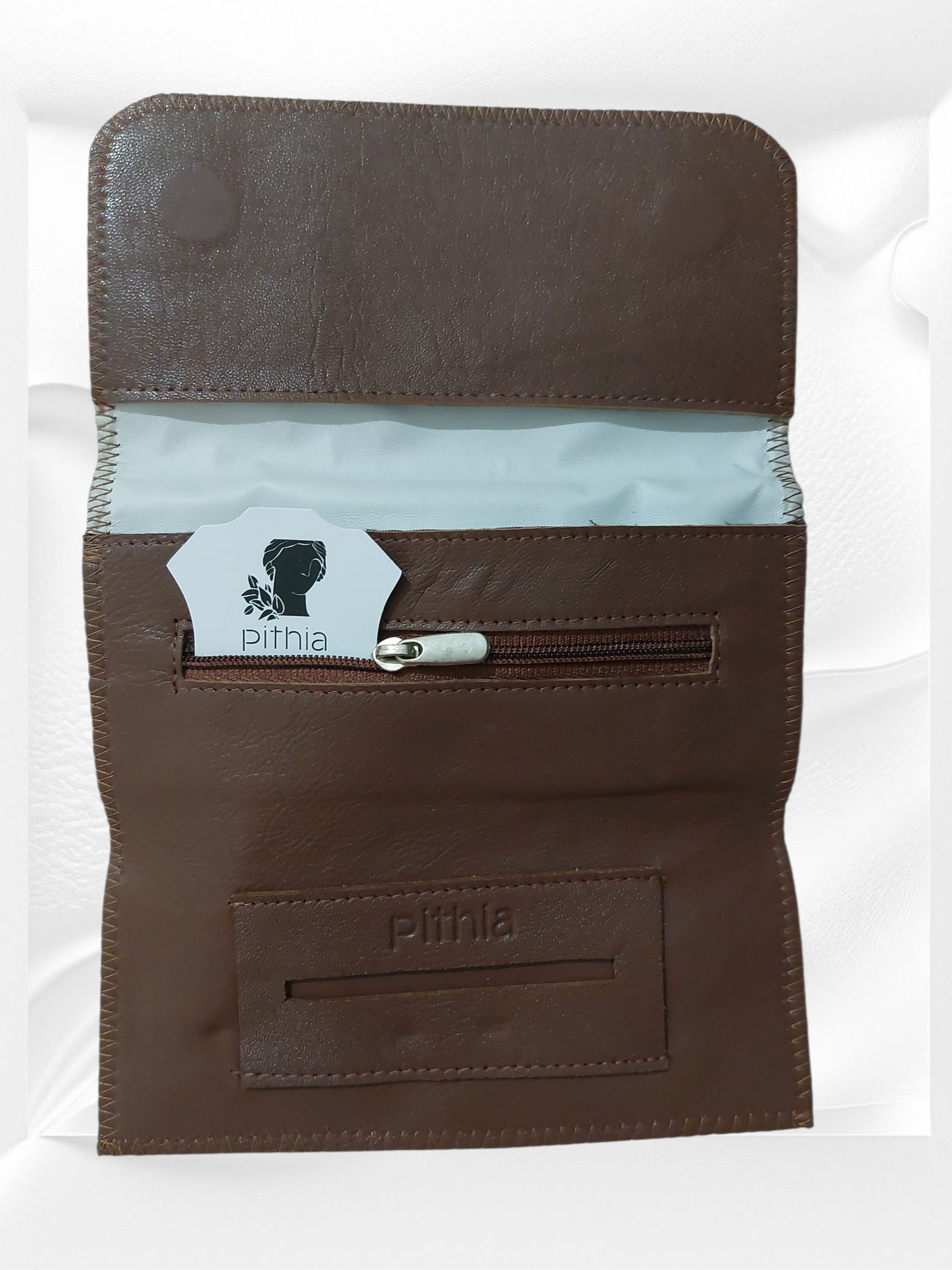 Η καπνοθήκη Pithia Leather Cognac είναι χειροποίητη, κατασκευασμένη από γνήσιο δέρμα υψηλής ποιότητας. Ο κομψος σχεδιασμος της συνδυάζει πρακτικότητα και αντοχή, ώστε να διατηρεί τον καπνο σας φρέσκο και να οργανώνει όλα τα απαραίτητα αξεσουάρ σας.